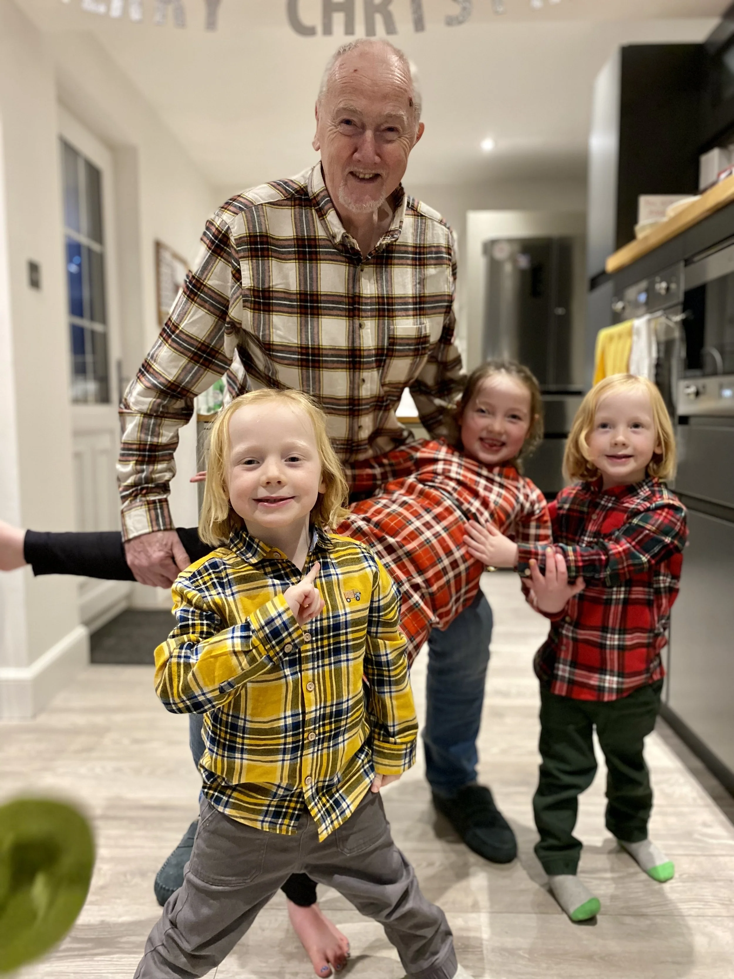 Family meant everything to Kenny. He loved nothing more than cooking a meal to share with those he loved, often finishing with an Irish whiskey, a board game, and a lot of laughter. Some of his happiest moments were being silly with his grandchildren — spotting planes together, throwing impromptu kitchen discos, and creating memories filled with joy and playfulness. Even while facing the challenges of lymphoma, Kenny never let it dull his humour, his spirit, or the deep joy he found in family.